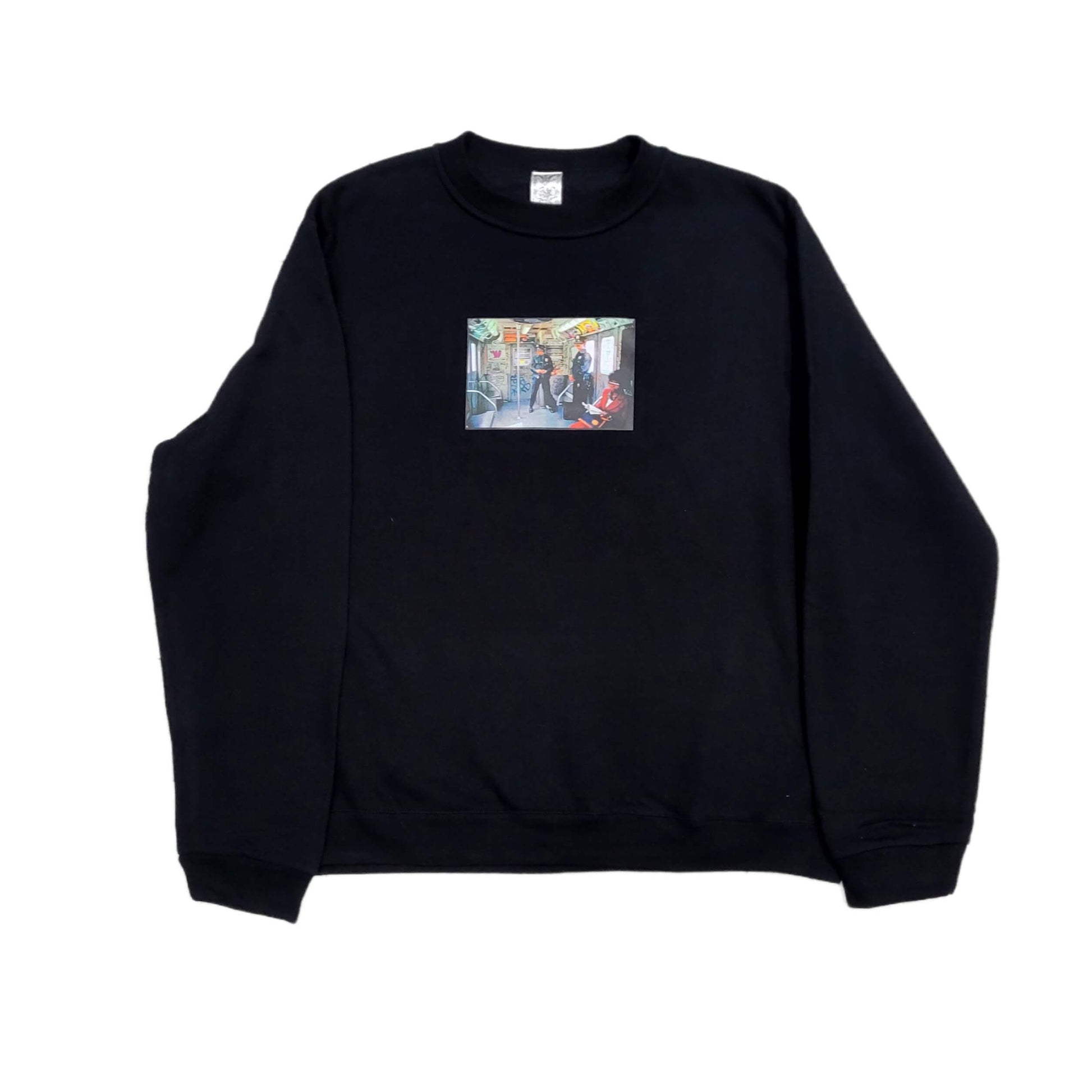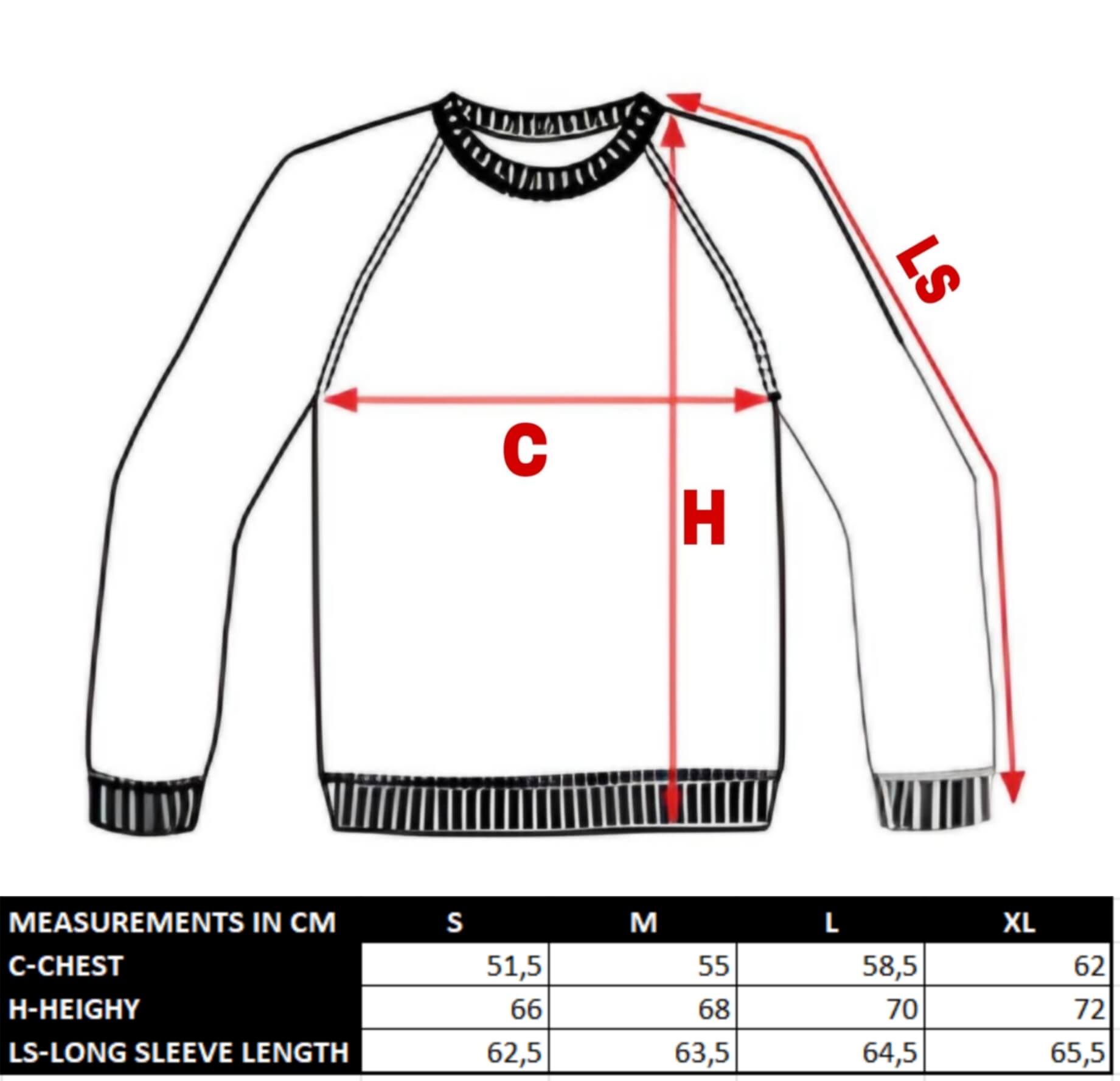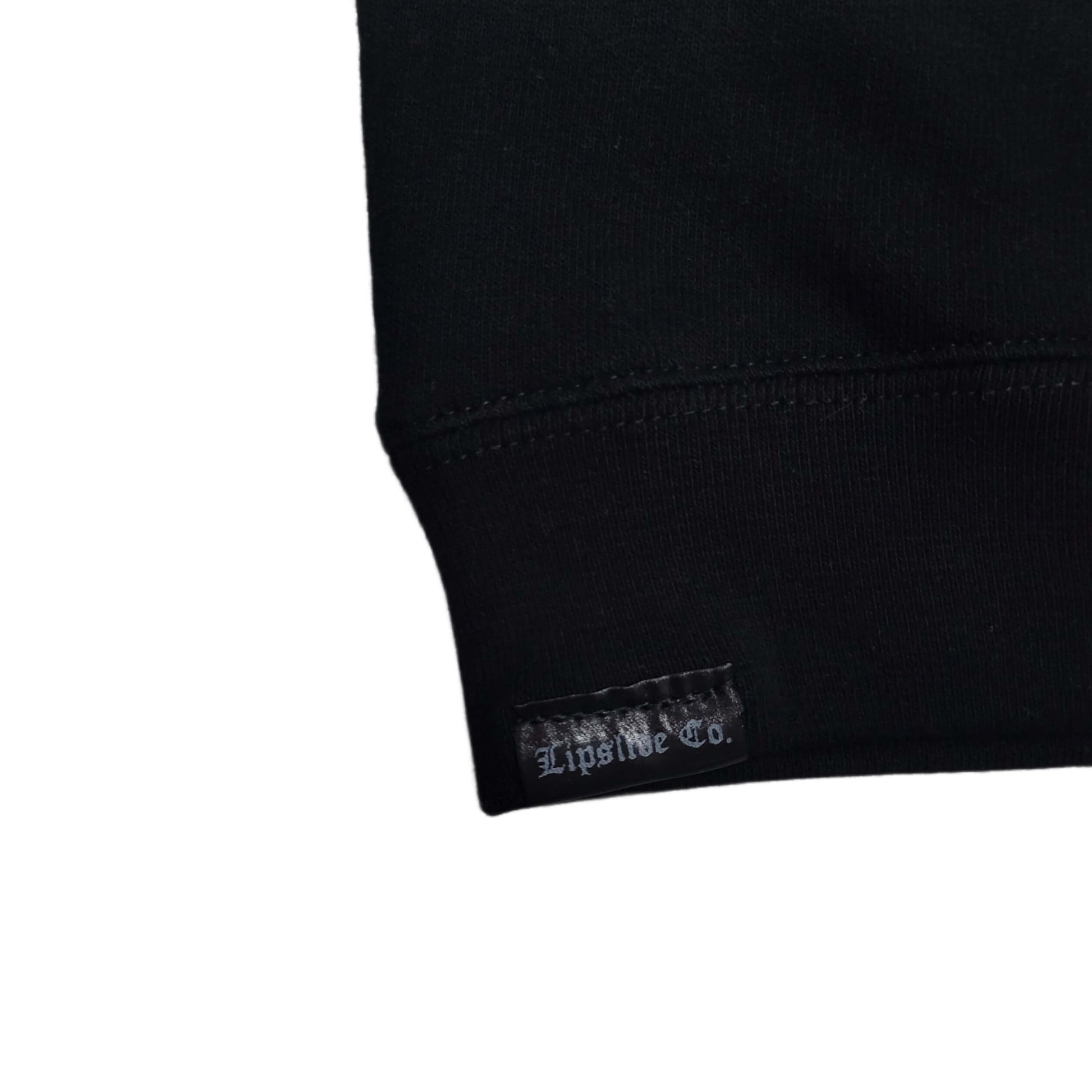 black sweater with unique lisplide design embroidery, 300 g/m², 80% cotton/20% polyester, soft brushed interior, ribbed collar, cuffs and hem.